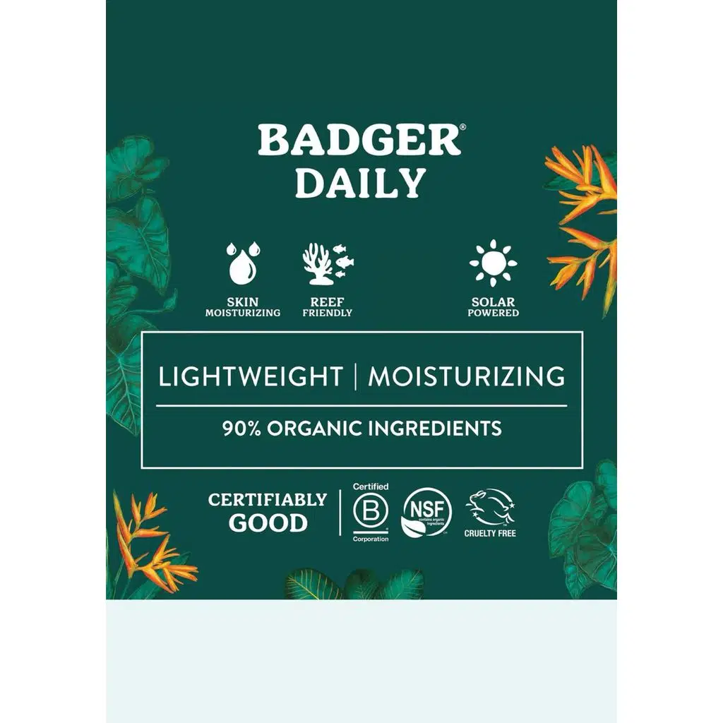 Güneş korumasında sadeliğin ve doğallığın gücüne inananlar için geliştirildi. Badger Daily Mineral Güneş Kremi, sadece 4 temel ve temiz içerikten oluşan formülüyle cildinize ihtiyaç duyduğu korumayı en saf haliyle sunar. Organik Hindistan Cevizi Yağı ve E Vitamini ile cildinizi güneşin zararlı etkilerine karşı korurken aynı zamanda besler. Günlük kullanım için tasarlanmış hafif yapısı, cildinizde anında emilir ve geride beyaz bir iz bırakmaz.